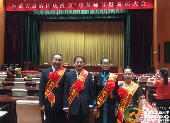 教师代表参加自治区表彰大会(左起:杨毅、丁雪华、斯日古楞、刀丽芳)