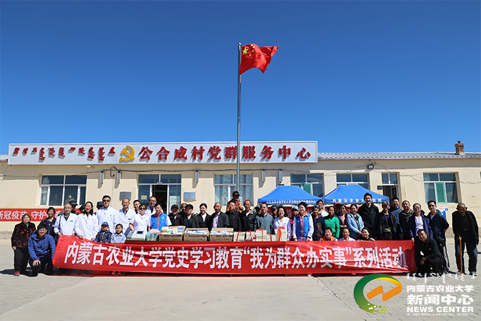 学校党委组织部、党委宣传部、乡村振兴研究院和校医院等单位与学校定点帮扶村、四子王旗吉生太镇公合成行政村党支部联合开展主题党日活动,为村民和学校驻村干部送医送药送祝福,送去了校党委和全体师生的关爱。