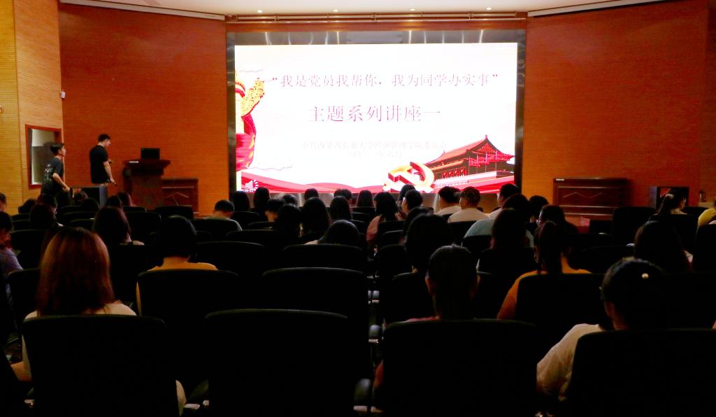为进一步落实党史学习教育实施方案,深入开展“我为群众办实事”活动,6月15日晚7:00,我院于经管院123报告厅开展“我是党员我帮你,我为同学办实事”系列讲座一,本次活动由研究生党支部负责人张泽鹏主持,五位优秀毕业生党员主讲,我院青年学子积极参加。