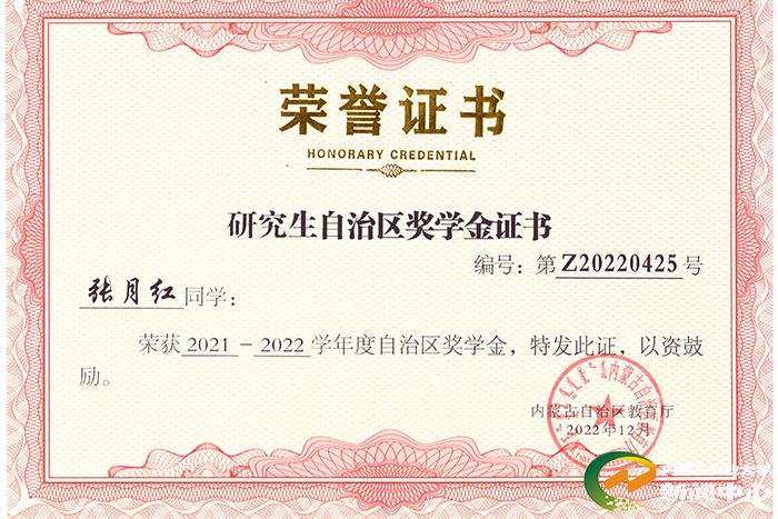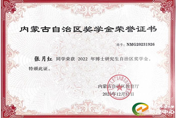 博观而约取,厚积而薄发。张月红出生于巴彦淖尔市临河区的一个普通农村家庭。父母都是勤劳朴实的人,父母用自己的汗水和努力为她创造了良好的成长环境。从小到大,家人对她寄予了很高期望,希望她能够成为一个有知识、有品德、有能力的人。在高考选择专业时,她经过深思熟虑,最终选择了农业水利工程(农业水土工程)。她认为这个专业社会发展需要求量大,未来深造和就业都有很大空间。顺利进入大学后,站在这个实现梦想的全新起点,她深知大学是提升自己、锻炼能力的重要阶段,因此她始终保持着积极向上的态度,努力学习专业知识,无论是课堂上还是课后,都努力挖掘每一个知识点的深度和广度。此外,她还积极参加各类学术讲座和研讨会,不断拓宽自己的视野,丰富自己的知识体系。她还利用周末时间学习金融学知识,辅修了专业学位,获得了工学与金融学双学士学位。梦想的种子在她的努力下逐渐发芽,结出“硕果”。她多次获得“三好学生”“优秀学生干部”等称号,本科毕业时被评为“优秀毕业生”,获免试攻读农业水土工程学术型硕士研究生资格,并顺利通过“硕博连读”考核。