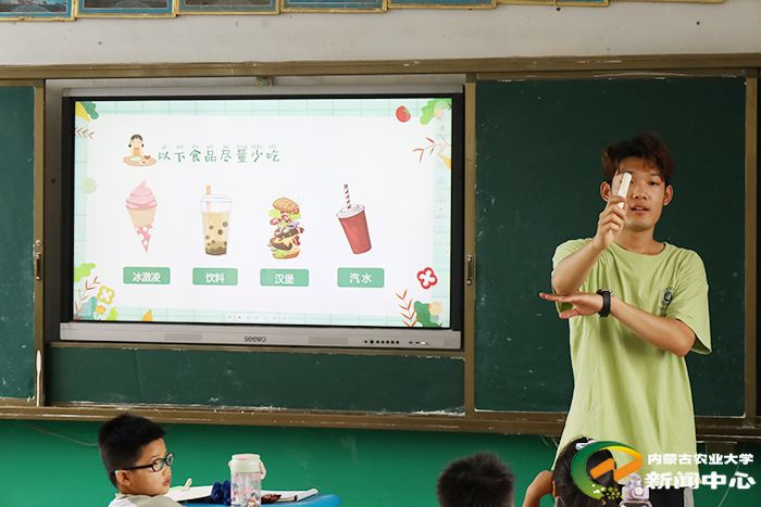 为促进留守儿童的全面与多元化发展,让村里的儿童也能感受城市教育的丰富与多样性,队员们采用了寓教于乐的教学理念,精心策划了一系列内容丰富、形式多样的课程。除了语文、数学等传统科目,还开设了如音乐、美术、体育、自然科学、非遗手工制作等兴趣课程,特别增设了普通话推广类课程,利用晨读、诗词朗诵、红歌学习等方式,让孩子们克服语言上的困难,张开口说普通话,促进并养成说普通话的好习惯。同时,志愿者们凭借自身专业知识,举办了一系列关于食品营养与安全的科普讲座,普及食品营养与安全知识,增加孩子们对日常饮食安全和营养均衡的知识,为他们的健康成长保驾护航。在活动期间,志愿者们坚持“寓教于乐,关爱健康”的服务理念,带领孩子们体验了由内蒙古营养学会自主设计制作的“营养大富翁”和“营养华容道”,在此过程中志愿者们通过游戏积极引导孩子们认识食品营养与安全的重要性并纠正其错误的观念。孩子们在体验游戏的愉悦同时也收获了欢乐,收获了更多食品营养与安全知识。同时,志愿者们通过精彩纷呈的讲解,让孩子们了解到了什么是中国居民平衡膳食宝塔以及膳食宝塔对日常饮食的重要性,孩子们也逐渐意识到了平衡膳食对健康成长的意义。